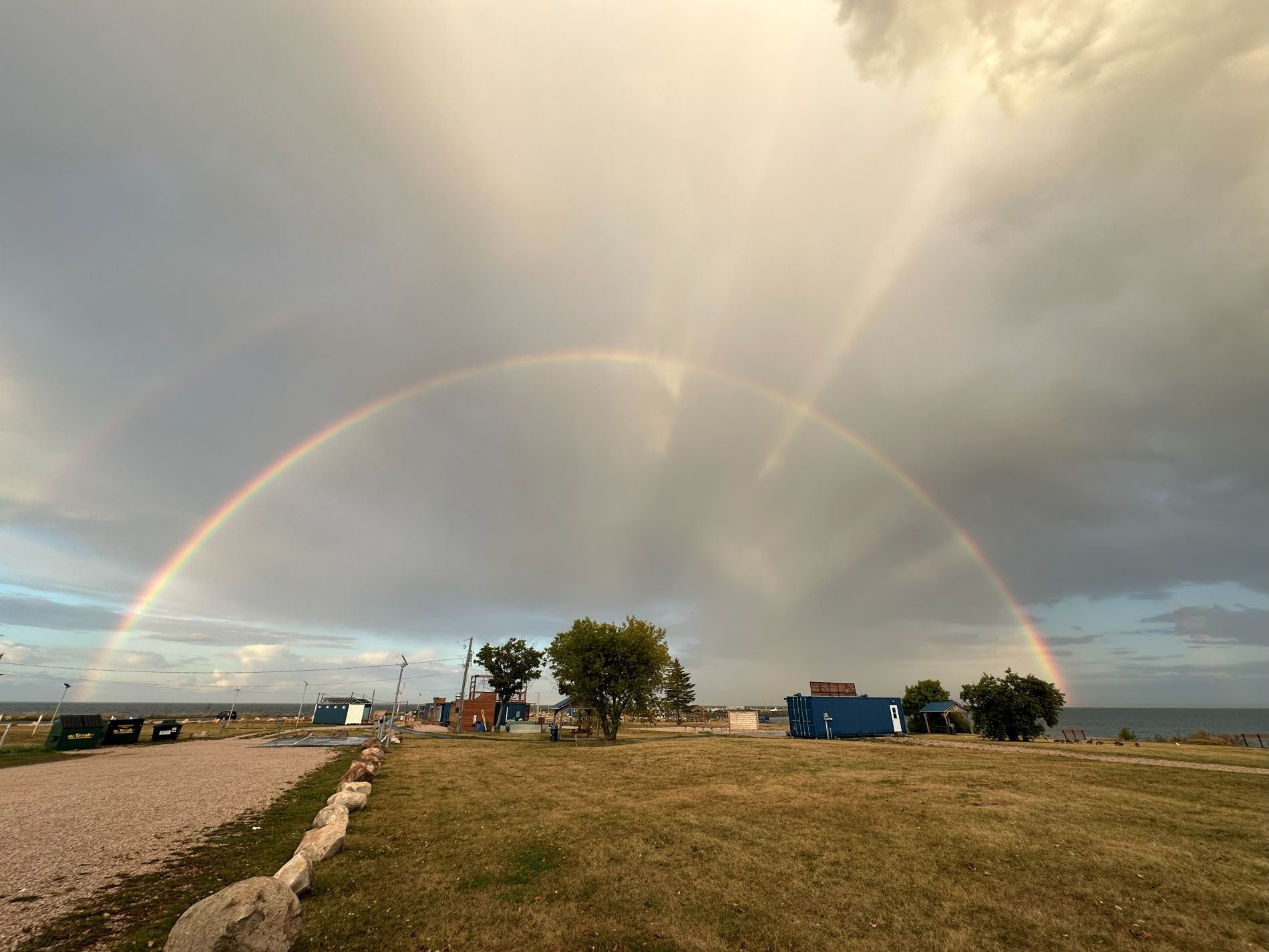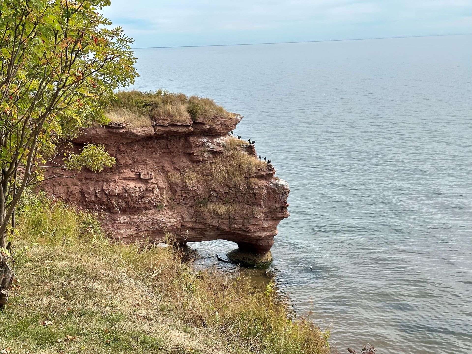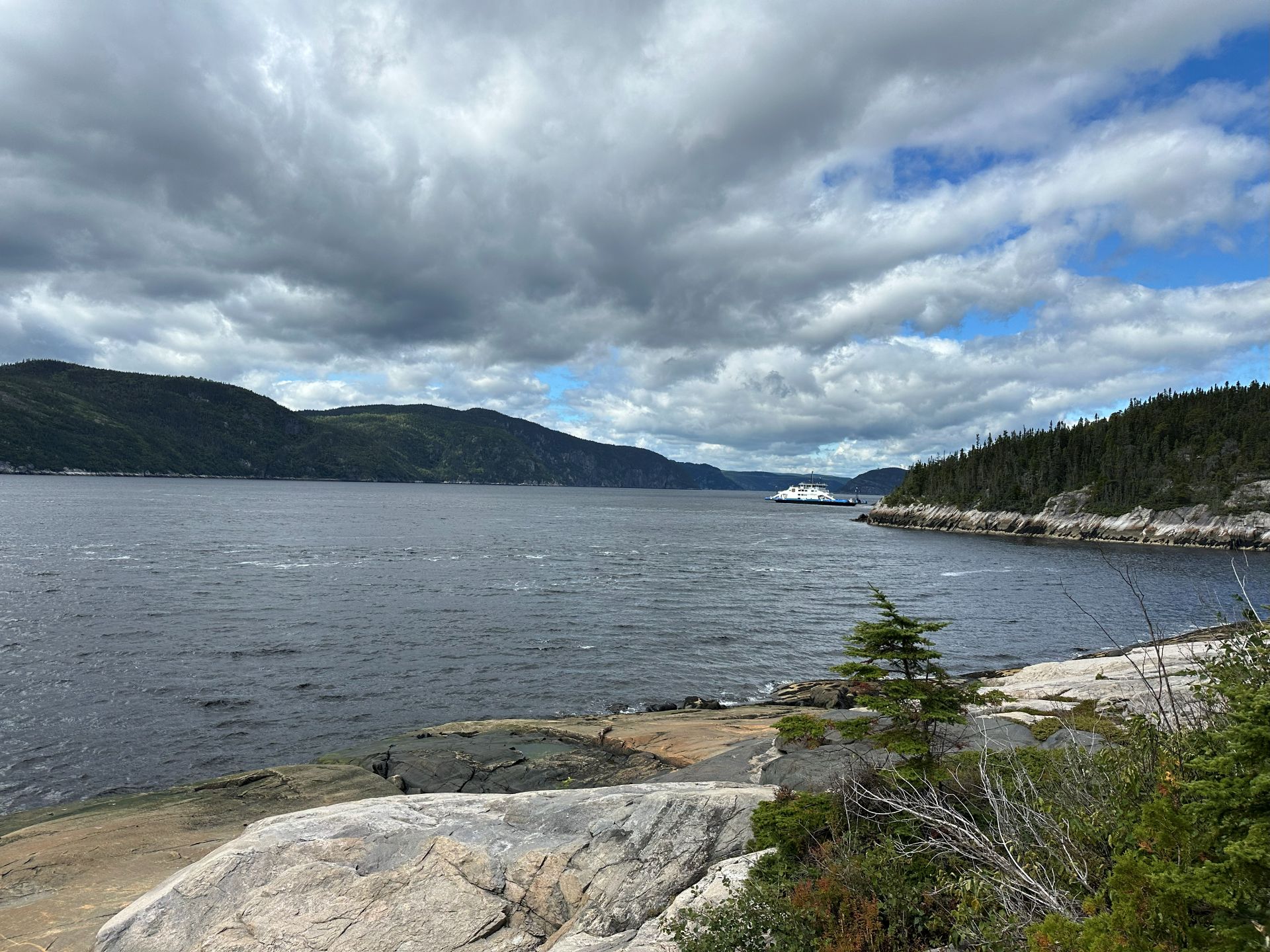 Wir folgen dem Sankt-Lorenz-Strom Richtung Osten. In Baie-Comee nehmen wir die Fähre über den hier 82 km breiten Strom. Kurz nach dem Auslaufen der Fähre können wir einige Roben und noch einmal einen Wal beobachten. Auf der anderen Seite des Stomes angekommen, beginnt die letzte Etappe unseres Abenteuers.