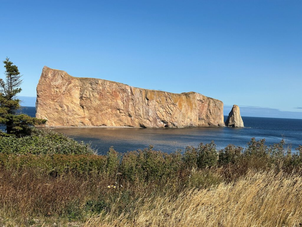 Zurück an der Küste erwartet uns Percé, wohl der bekannteste Ort der Region. Der berühmte Rocher Percé, dieser gigantische Fels mit seinem natürlichen Tor, liegt majestätisch im Wasser. Bei Ebbe kann man ihm erstaunlich nahe kommen, bei der derzeitigen Flut spiegelt er sich im tiefblauen Meer. Die Szenerie mit der Insel Bonaventure im Hintergrund und einer der größten Bastölpelkolonien begeistert. Insbesondere die Bastölpel, die sich zu Hunderten senkrecht ins Wasser stürzen. Dabei können sie 100 km/h erreichen und tauchen bis zu 15m tief ins Meer ein. Je weiter wir die Halbinsel umrunden, desto einsamer werden die Straßen. Zwischen Gaspé und Sainte-Anne-des-Monts scheint die Zeit langsamer zu vergehen. Alte Leuchttürme, verlassene Strände und immer wieder dieser weite Horizont prägen unsere Fahrt.