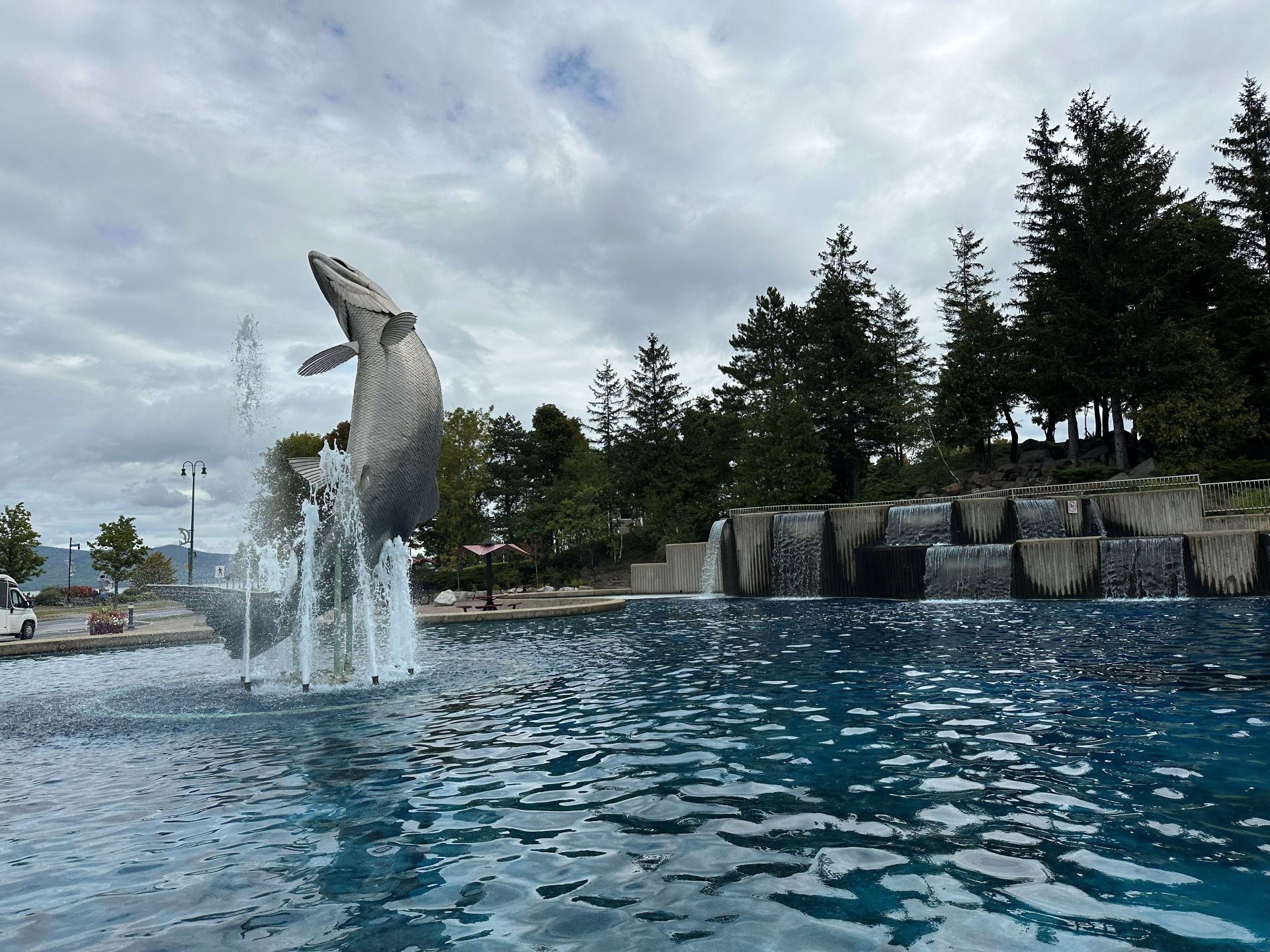 Jetzt im September hält der Indian Summer Einzug in den Osten Kanadas. Und eh man sich versieht, schaltet ganz Kanada auf Winter um. Campgrounds schließen ebenso wie die Nationalparks, die man allerdings weiterhin – nun kostenlos – besuchen kann. Ebenso sieht man an vielen Läden und Restaurants das Schild “Closed for the Season”. Davon merkt man in Tadousac nicht allzu viel. Durch seine tolle Lage an der Mündung des Fjords in den Sankt-Lorenz-Strom ist es begehrter Besucher Hotspot. Der Hafen ist gespickt mit Ausflugsbooten zur Walbeobachtung. Wir verzichten darauf und wandern am Ufer einer kleinen Halbinsel entlang mit Blick auf die Mündung des Fjords. Und wir haben Glück. Direkt in der Mündung taucht ein Wal auf, den wir längere Zeit beobachten können. Es ist ein kleineres Exemplar, vermutlich ein Grauwal, die hier überwiegend vorkommen sollen.